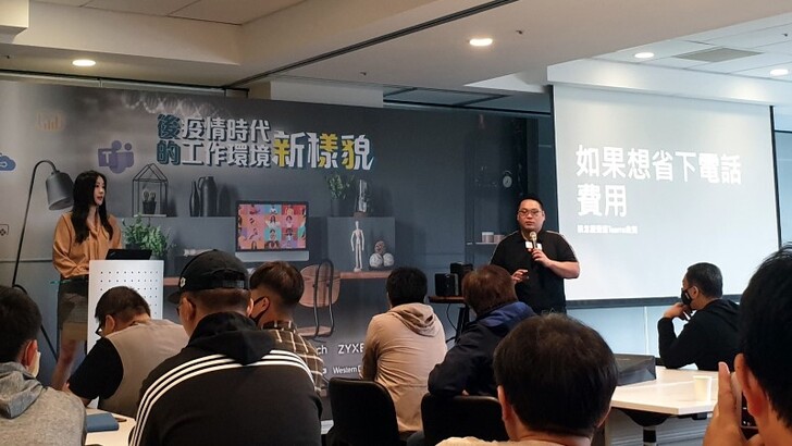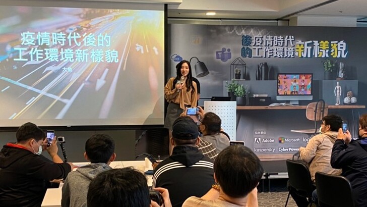 正妹直播主大魚上台後先簡單的自我介紹, 其實有在追蹤大魚的都很了解她對於3C科技一把罩, 甚至還自開玩笑是工作人, 米熊真的非常佩服. 大魚帶來的主題直接切入要如何進行線上會議? 企業端使用的會議系統其實有很多套, 但在安全性與方便性整合來說, 最常見的還是會以微軟的 Microsoft Teams 為主! 這套米熊還沒使用過, 看來應該可以找時間來嘗試看看. 正當這麼想的時候, 大魚還有邀請微軟的講師上台補充, 說對企業來說還能省下通話費, 並且可以直接打出電話讓客戶不會認為是詐騙電話.