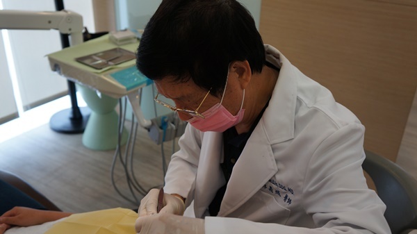 「哈哈齁沒問題啦!來我們裡面坐。」林義城院長指引阿憲到診療台上,院長便一一說明他牙齒的情況,還幫他口腔做了一遍清潔,最後跟阿憲說下次來植牙的話,會怎麼做,方法跟過程林院長都說得很仔細,阿憲也很開心。