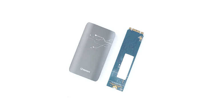 TS1 SSD 外殼為鋁擠型設計,呈顯上下薄、左右厚的設計。因為消費者能力所及大概也拆不開,便詢問 TOPMORE 客服得知裡面是 USB 轉 mSATA 2242 SSD。