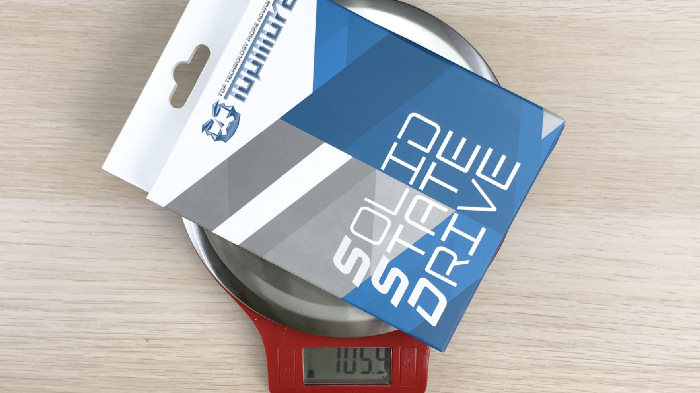 TS1 SSD 的包裝的重量約 105.9g。