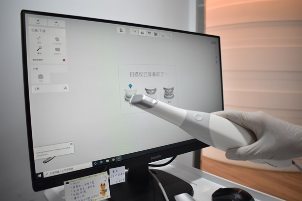 第一次回診,醫師先仔細地再檢查過一次,並幫我清潔乾淨,隨後便讓我做最重要的齒模,而在這裡,我必須特別強調一項超植很厲害的設備,就是3d口掃機!這玩意兒很酷,是直接透過影像讓患者與醫師看到,直接準確的了解口腔內部情況,並建檔將我的口腔資訊傳送給做齒模的部門,讓那邊精確地做出專屬於我的矯正牙套!