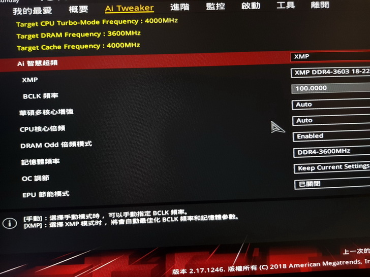 ▼ 既然有 XMP 當然就給它先開下去,可以看到參數 DDR4-3600 CL 18-22-22-42-1.35V。