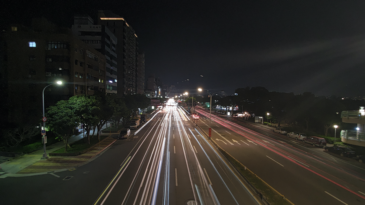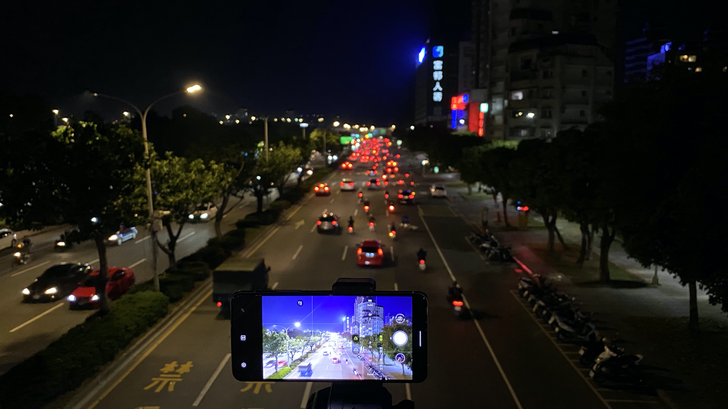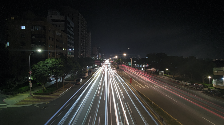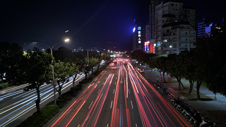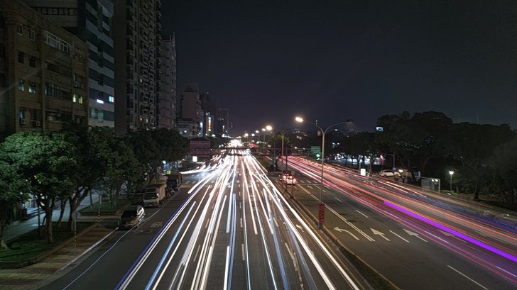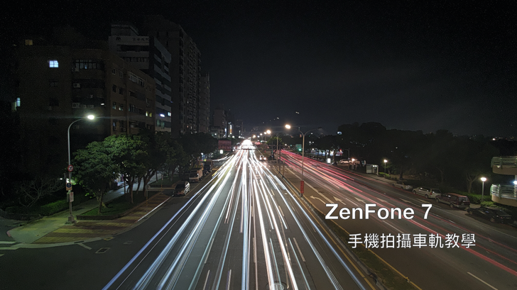 以 ZenFone 7 專業模式,主鏡頭豎直拍攝,ISO 25,曝光時間 6 秒。豎直拍攝可以讓車軌在畫面中的比例更高。
