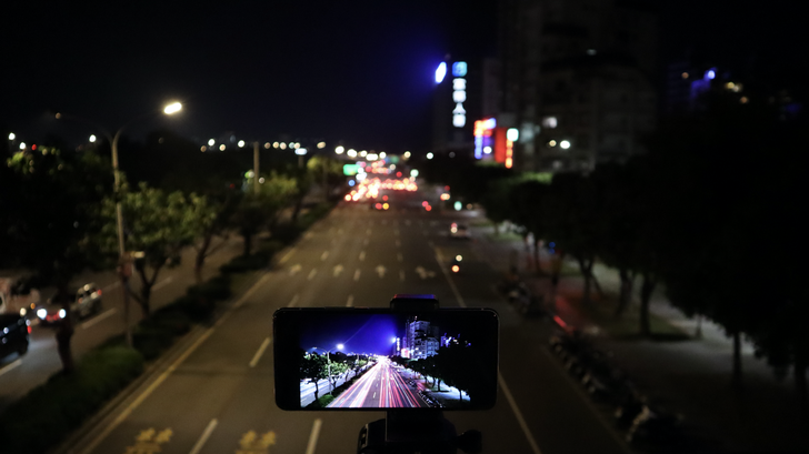 由於拍攝車軌,需要很長的曝光時間,而手持基本上無法穩定這麼久,因此建議要準備手機腳架,包括腳架、雲台、手機夾具……等。如果手邊剛好沒有這些工具,就需要現場找物體靠著,手也要扶著非常穩。