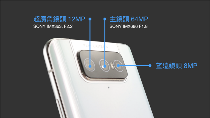 ZenFone 7 主鏡頭採用了 SONY IMX686 旗艦感光元件,成像效果非常好。而超廣角鏡頭為前年的旗艦感光元件 SONY IMX363,就是 ZenFone 5 上的主鏡頭,因此成像效果也不錯,而超廣角的優勢就是視野更大,畫面構圖更好看。