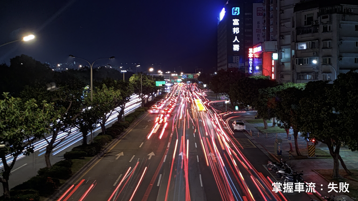 按下快門的時間點也要隨著車流調整,例如前面塞車或才剛綠燈要起步。後面過來的車會隨之減速,那就拍出不出好看的車軌了,還會拍出車輛的原型。