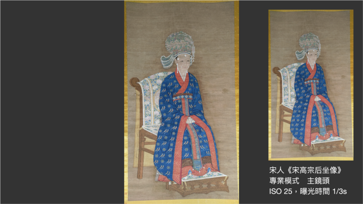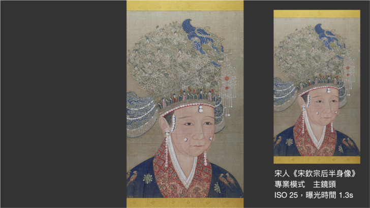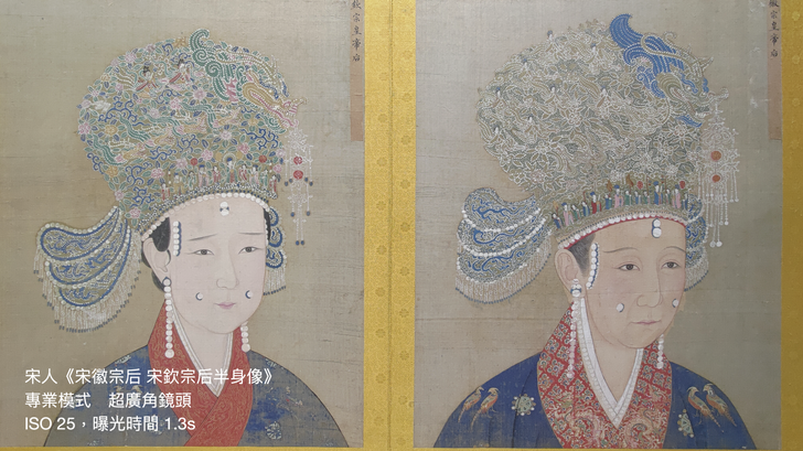 「宋人《宋徽宗后 宋欽宗后半身像》」。以 ZenFone 7 專業模式,主鏡頭拍攝右邊的宋徽宗后。ISO 25,曝光時間 1.3 秒。
