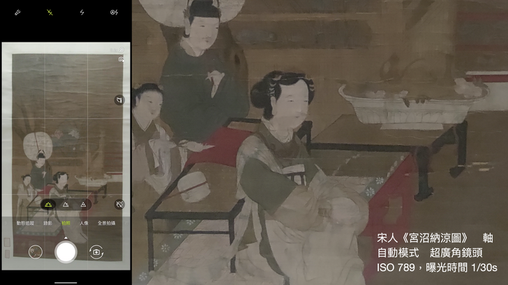 第五幅是「宋人《宮沼納涼圖》」。以 ZenFone 7 自動模式,超廣角鏡頭拍攝。ISO 789,曝光時間 1/30 秒。