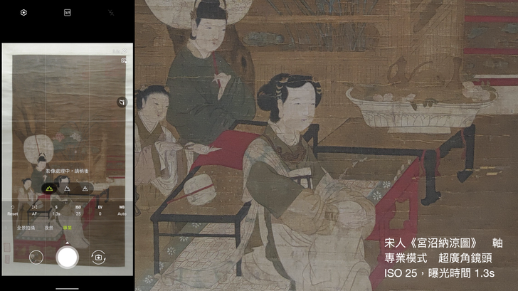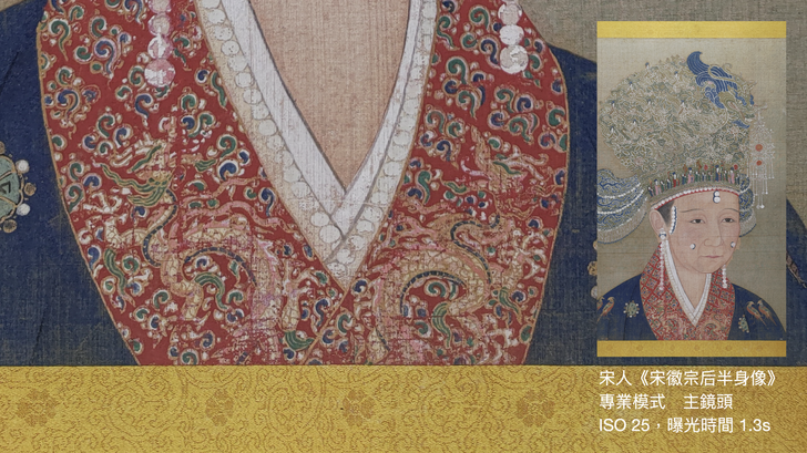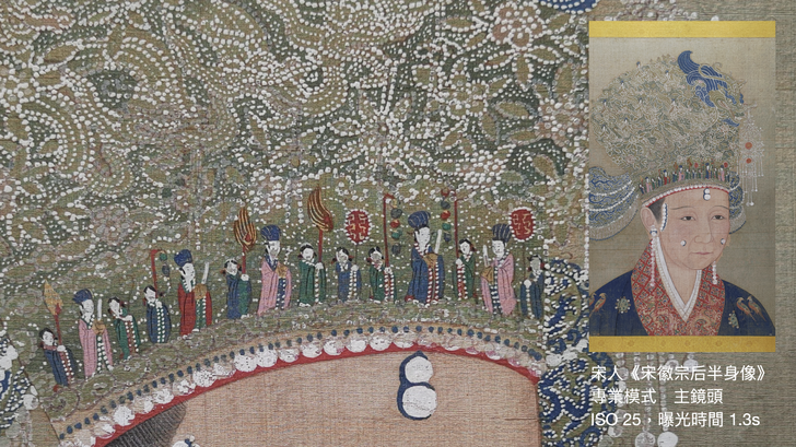 第一幅首先來看「宋人《宋徽宗后 宋欽宗后半身像》」。以 ZenFone 7 專業模式,超廣角鏡頭拍攝。ISO 25,曝光時間 1.3 秒。