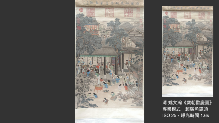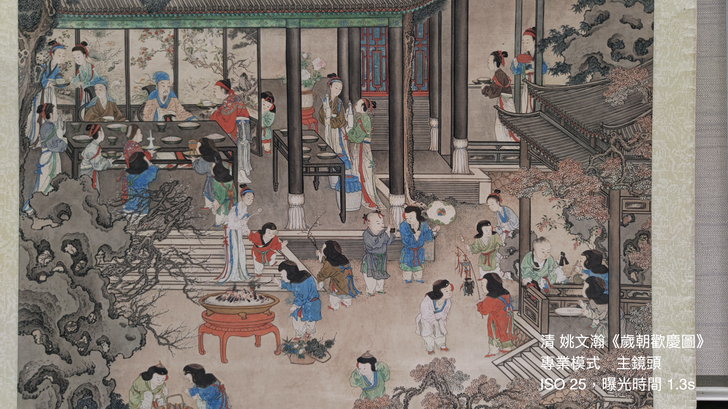 第二幅是「清 姚文瀚《歲朝歡慶圖》」。以 ZenFone 7 專業模式,超廣角鏡頭拍攝。ISO 25,曝光時間 1.6 秒。