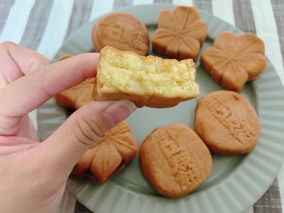 我手裡拿的是奶油口味的卦山燒,這樣單吃就很好吃了!!