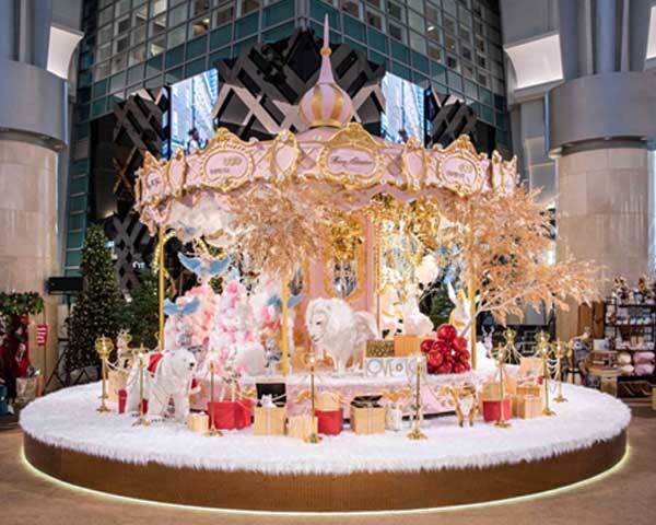 位在四樓的都會廣場設有夢幻旋轉木馬耶誕樂園,金色鑲邊的外觀邊框和討喜的粉紅色旋轉木馬、潔白聖節的白獅、聖誕不可缺的麋鹿與北極熊玩偶,再加上滿滿的耶誕禮物盒,讓整個耶誕充滿著聖誕的祝福與聖誕音樂的播放,更讓人想乘坐著木馬,感受到耶誕到來的滿滿幸福感!
