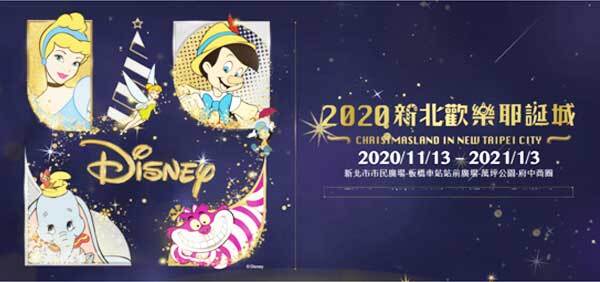 今年首度2020年新北與迪士尼合作,並由加坡頂尖光雕團隊賀喜娛樂策畫主燈秀,將知名童話故事如小飛象、愛麗絲夢遊仙境、小飛俠和 小木偶奇遇記用等迪士尼系列童話故事人物以雷射光雕秀來展現不一樣的耶誕氣氛:此次耶誕11/13 就已開始,展出共52天。而且整個展區很大很廣,包含
