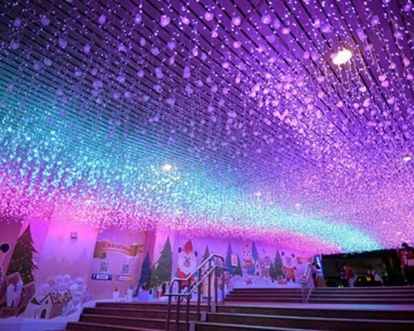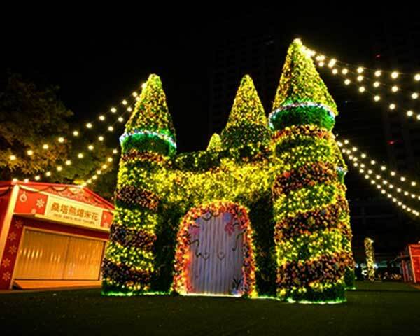 白雪皚皚的森林帶給小朋友的聖誕般的綺麗童話森林,聖誕樹閃閃的燈光和滿天佈滿著耀眼的白光點點相呼應,有如置身北歐般的奇境。