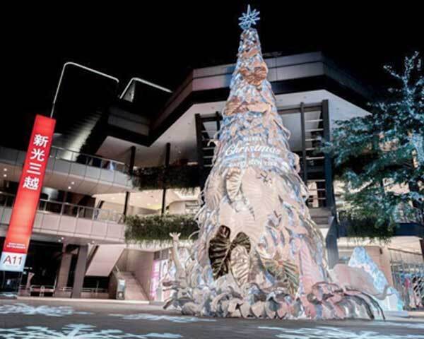 說到聖誕節,每年聖誕景點新光三越信義新天地總是有不同的設計,讓人雀喜確想爭相目睹,根據BETAUTY美人網所述新光三越信義新天地慶祝地球日50周年,在新光三越A11前香堤廣場上打造一棵高17公尺的聖誕樹,外面覆蓋著白色熱帶植物葉,白色象徵聖潔,圍繞四周的白色長頸鹿與大象與這個地球共榮共生,顛覆傳統以綠色為主軸的聖誕樹。旁邊的銀河燈海、彩虹光橋,讓這裡變成信義區也為熱門的打卡景點。