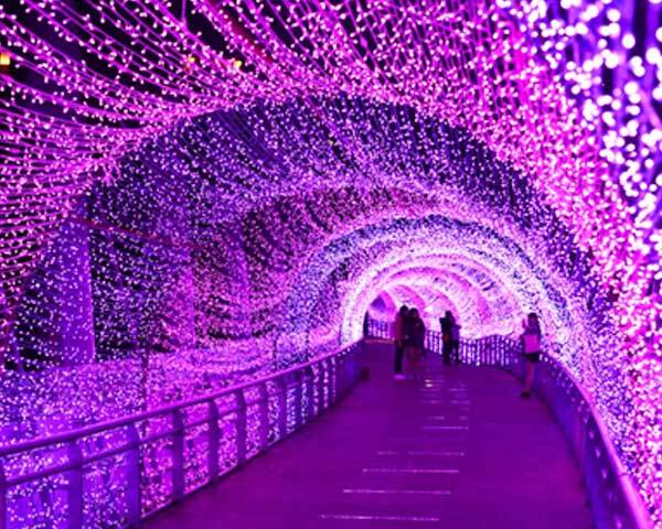 走進耶誕城紫粉的燈海洋溢著愛情的氣氛,美得令人目不暇給,牽著您的伴侶、小孩、感情好的麻吉、戀愛中的情侶,一起走進讓人感覺幸福的通道。