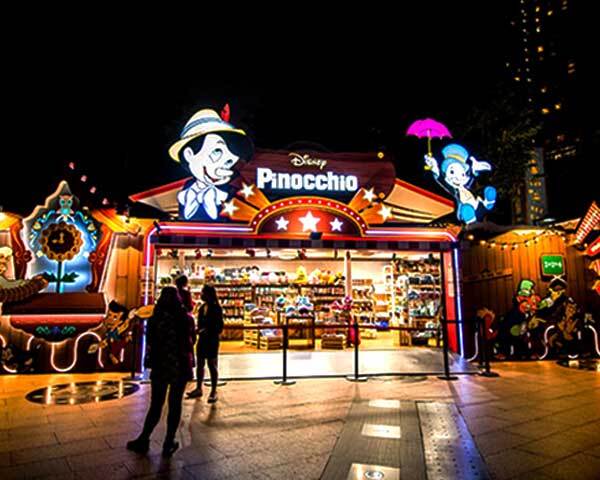 今年首度2020年新北與迪士尼合作,並由加坡頂尖光雕團隊賀喜娛樂策畫主燈秀,將知名童話故事如小飛象、愛麗絲夢遊仙境、小飛俠和 小木偶奇遇記用等迪士尼系列童話故事人物以雷射光雕秀來展現不一樣的耶誕氣氛:此次耶誕11/13 就已開始,展出共52天。而且整個展區很大很廣,包含