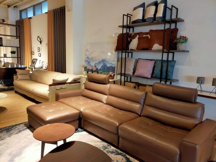 聽到我們的需求之後,直接帶我們參觀皮製沙發的放置區。