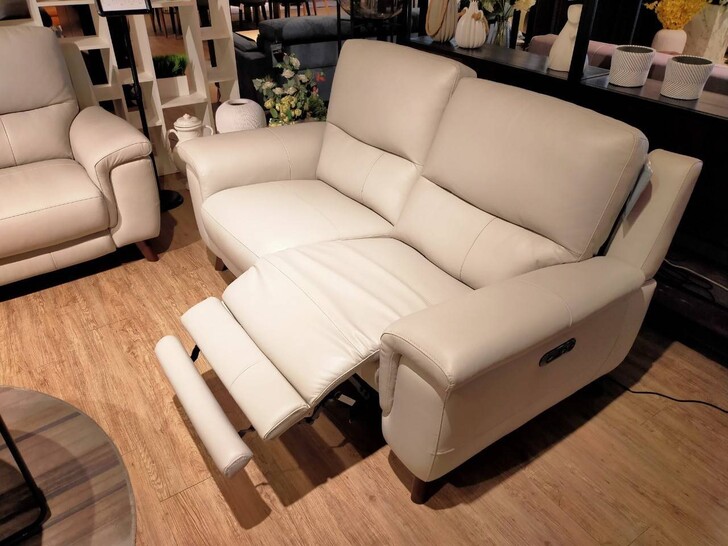 服務人員說牛皮有非常好的透氣性與親膚性,這張沙發用的是全牛皮,舒適度高,