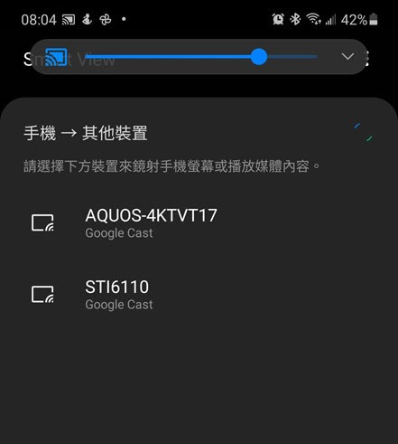 2. 內建無線投影(Android TV): 使用三星NOTE10+ 與小米手機,都可順利的無線投影(名稱ST6110 即為EH-TW5700),家人很快就知道如何使用。