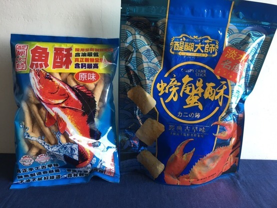 這次說是買了淡水很好吃又有名的魚酥跟螃蟹酥!