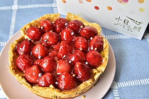 水母吃乳酪的草莓乳酪塔很真材實料,使用有名的大湖草莓鋪滿整個乳酪塔