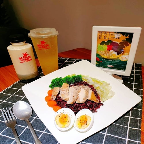 每天12點📣限量推出,雞胸肉不柴好滋味,搭配健康的水煮蔬菜和紫米飯,整