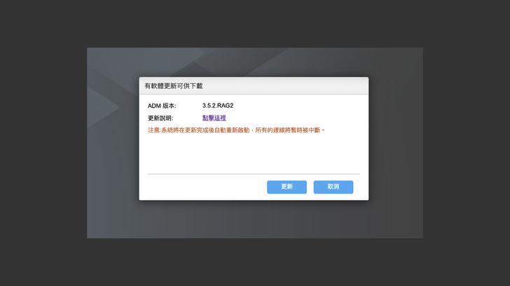 更新作業系統,現時最新是 ADM3.5.2.RAG2。