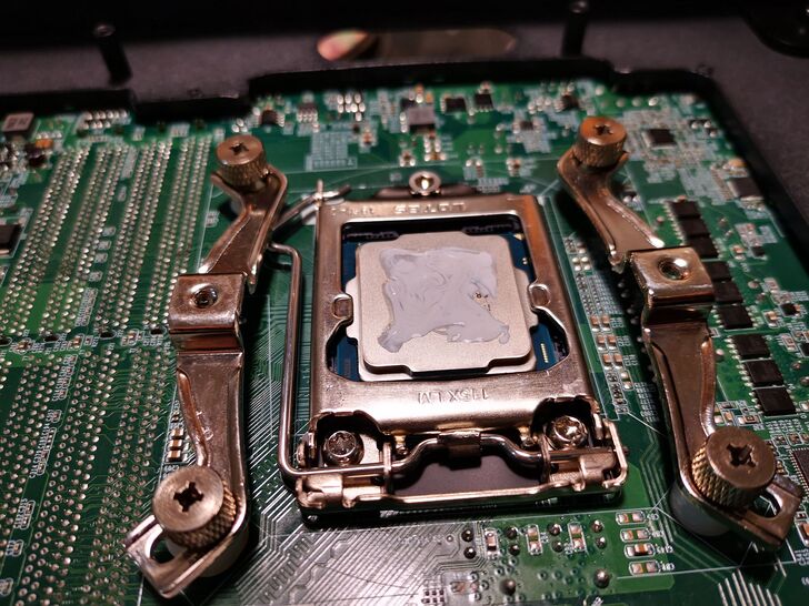 ▲CPU安裝非常簡單,槽內有防呆的腳位。只要不是硬塞亂裝,都不必擔心上下左右顛倒的問題喔!