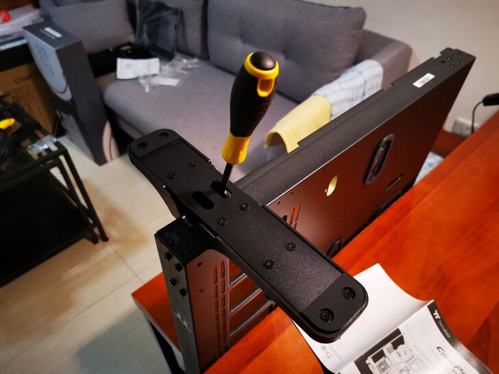 我本來以為如果以後要更換電供,得每次都得把整組支架都拆開這麼麻煩,原來不是這樣。這是抽取式的,所以從右邊套進去,接著鎖上固定就好了!不必拆支架。