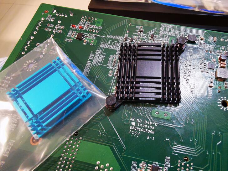 黑色的是我們常見可以安裝卡上CPU,若要使用的話可以先塗上散熱膏。至於藍色版本的散熱片很方便,背面黏有散熱貼紙。直接朝晶片黏上去即可。不過我們本次採用的機殼來說就不便用上了。但是若是未來要使用其他的機殼或者DIY(把機殼給鋸開XD)當然就可以安上了~