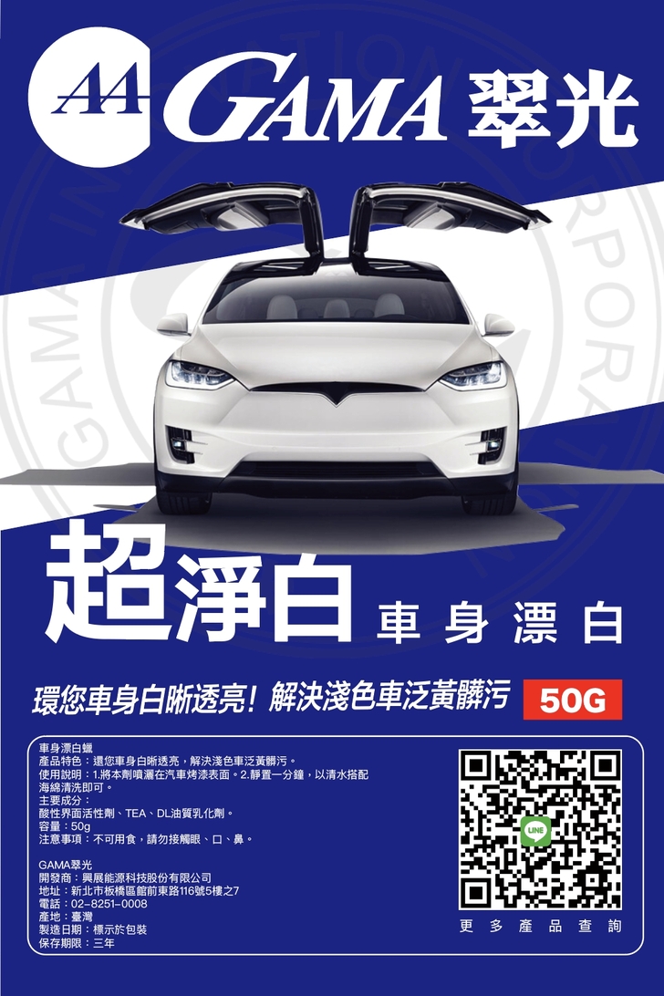 興展能源-汽車清潔用品-車身漂白蠟 生活 · GAMA翠光 · 發表於 2021-01-29 13:27 · · 檢舉 列印版 twitter plurk 2.1千閱讀次數 產品特色:還您車身白晰透亮,解決淺色車泛黃髒污。 使用說明:1.將本劑噴灑在汽車烤漆表面。2.靜置一分鐘,以清水搭配海綿清洗即可。 主要成分: 酸性界面活性劑、TEA、DL油質乳化劑。 容量:50g 注意事項:不可用食,請勿接觸眼、口、鼻。 GAMA翠光 開發商:臺灣柯美股份有限公司 地址:新北市板橋區館前東路116號5樓之7 電話:02-8251-0008 產地:臺灣 制造日期:標示於包裝 保存期限:三年 線上客服line:@gamagroup 讚 收藏 快速回應 引言回應 登入來回應 header home