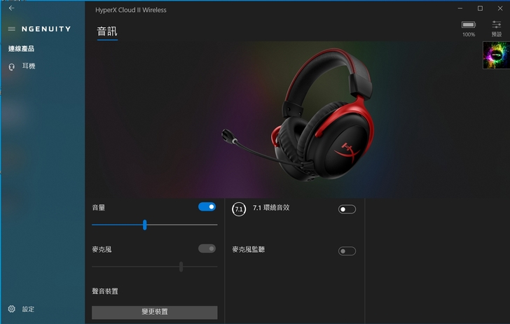 可以支援電量監控以及開啟7.1環繞聲道模式