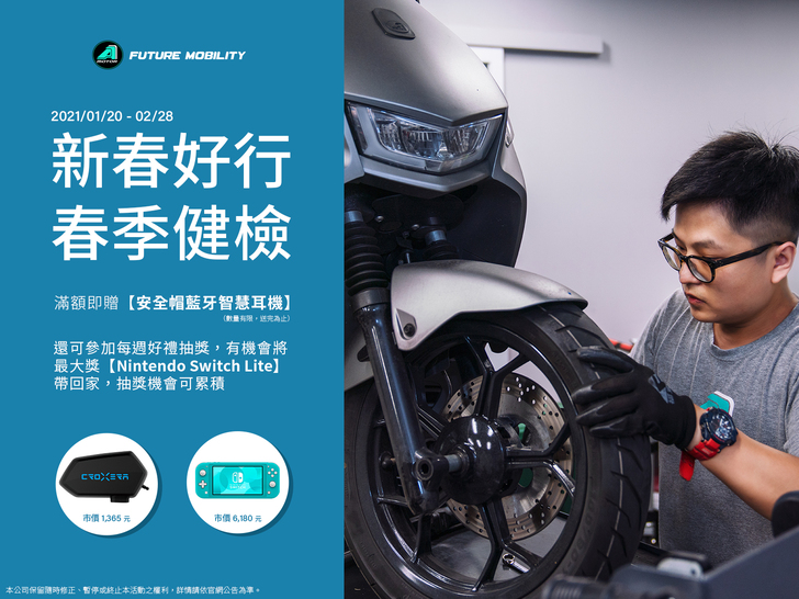 隨著消費者對智慧電車領先業界的騎乘體驗,與能源轉型趨勢的認可,吸引越來越多車主加入,宏佳騰秉持重視車主回饋與消費者體驗的初心,於春節前夕推出「新春好行,春季健檢」活動,即日起至2月28日,車主返廠即可免費享有包含電裝系統、冷卻系統、行車安全性、傳動系統與機械結構等重點檢查項目,讓所有車主享有最安全的行車品質,完成服務調查問卷填寫,還有機會獲得Nintendo Switch Lite等豐富大獎,宏佳騰貼心邀請車友及早預約回廠健檢,確保愛車維持最佳車況。