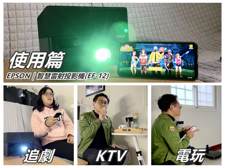 ▲拔比,你最近不是有試用EPSON|全球最小的3LCD 智慧雷射投影機(EF-12),我們用這個來唱歌、看電影吧!這樣就算不用出門,也可以看電影、唱KTV囉!