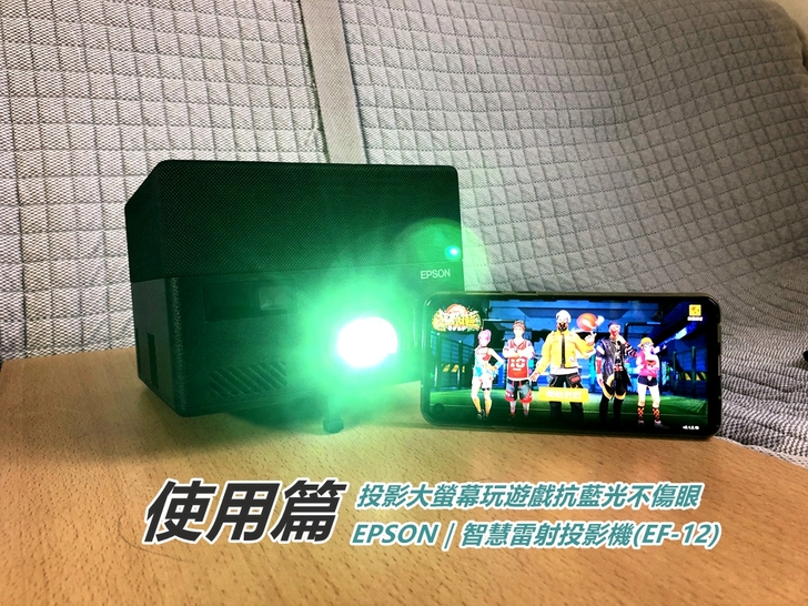 ▲玩遊戲看著小小的手機螢幕真的很傷眼,如果使用EPSON EF-12智慧雷射投影機來玩遊戲,因為投影螢幕沒有藍光,不只可以享受大螢幕帶來的震撼感,還能夠保護眼睛喔!
