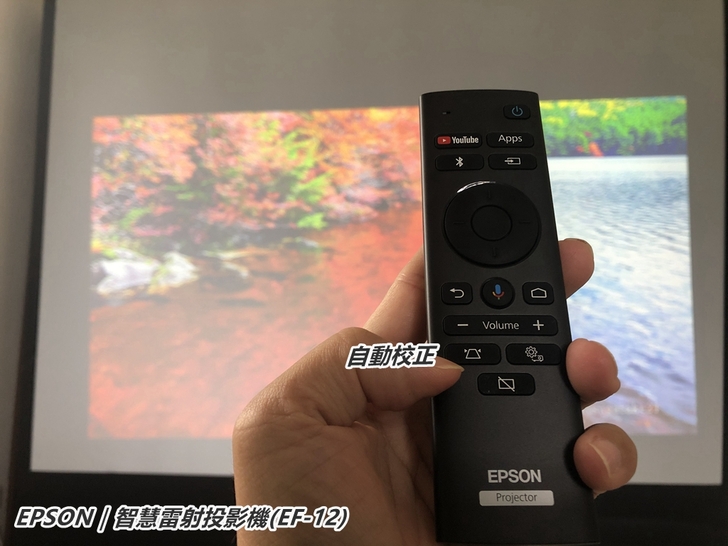 ▲EPSON EF-12智慧雷射投影機內建Android TV,所以附贈的遙控器均有支援google語音輸入搜尋功能!要唱什麼歌,用說的就能立即點歌喔。