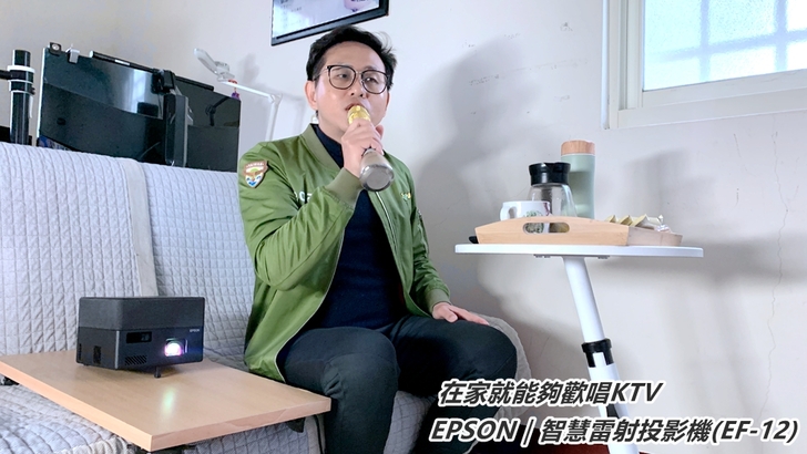 ▲武漢肺炎的疫情期間,不能出門唱歌怎麼辦?有了EPSON EF-12智慧雷射投影機,再買一組藍牙麥克風,你家也能夠是KTV喔!