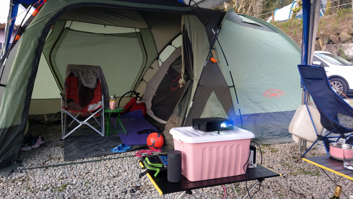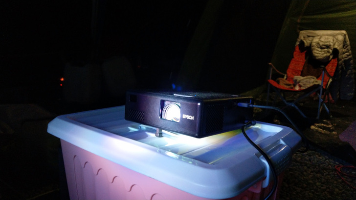 喜歡露營戶外活動的我早想增加影音設備在假日的歡樂時光 ,讓露營更顯得有聲有色 , 經過長時間的觀察與研究 , 今天為大家介紹這台讓我眼睛為之一亮的自由視移動光屏Epson EF- 11全球最小的3LCD 雷射投影機 , 尺寸只有 17.5cm(寬)x17.5cm(長)x5.8cm(高) .