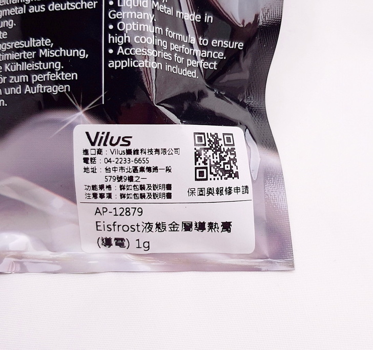 ▼ ALPHACOOL液態金屬 外包裝,使用密封塑料袋包裝,黑底白字的冷酷設計,蠻符合散熱主題。