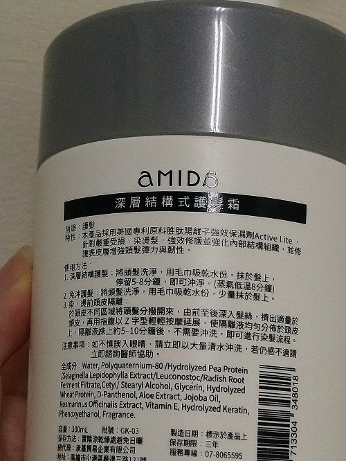 昨天在小三美日購入的Amida深層結構式護髮霜 價格339 300ml 可以接受 蠻好看的配色 灰白色蠻有質感的 背面有使用方式 有三種使用方式 可沖洗 也可以不沖 還能當染髮前的隔離 蠻多功能的 我是洗完後用的 味道超好聞 隔天起床頭髮一整天超好聞 重點是很順喇 一直誤重點很香😂 推推 有想買護髮霜可以考慮這瓶唷~ 讚 收藏 快速回應 引言回應
