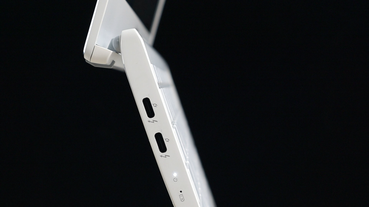 樞紐力道適中,可以單手打開螢幕,但螢幕非常軟。超窄的螢幕邊框,在上方仍具備 IR webcam,可以支援 Windows Hello 解鎖。若設定 Windows 取消登入畫面,便可感受到其超快速小於一秒的睡眠喚醒速度,通常在螢幕還沒打開到 90 度時就已經進入桌面,讓使用者幾乎不需要浪費時間等待。