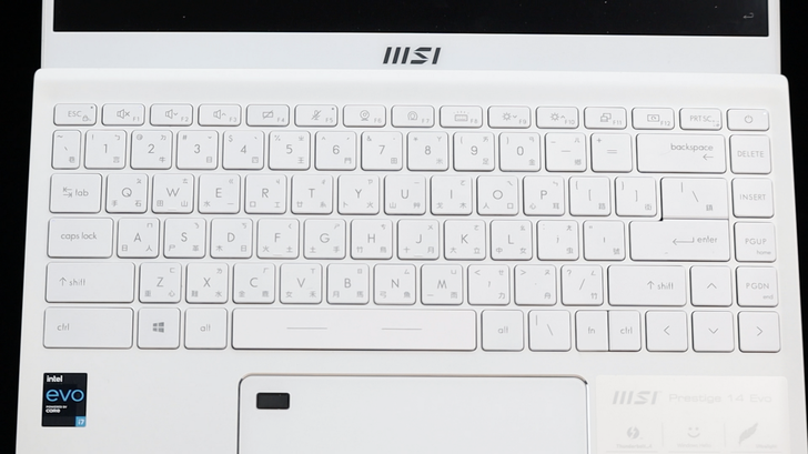 MSI Prestige 14 Evo 是專為內容創作者而推出的一款筆電,在外型上更為輕薄。重量約 1.29 kg、機身厚度僅有15.9mm,更能方便攜帶出門。純白機身上換上了 MSI 簡約的新 Logo,以類似燙銀的方式呈現出金屬色,擺脫以往的電競感,視覺一體性更高。A 件表面漆面相當均勻,拿起來的觸感也不錯,不易手滑。且 Logo 不會太深,因此手感舒適。
