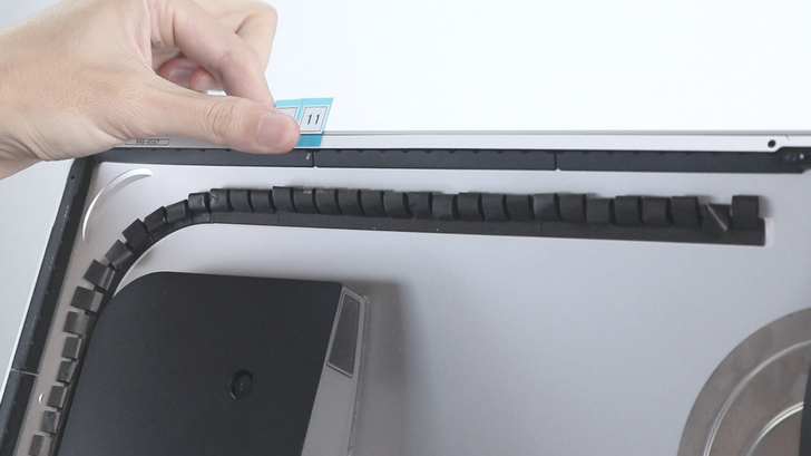 在確認 SSD 都有認到,可以正常讀寫後,再次檢查都正常,就開始貼雙面膠。這個雙面膠是 OWC Aura Pro SSD 套裝的配件,備有 27 吋和 21.5 吋兩種規格,這邊就使用 27 吋的雙面膠。