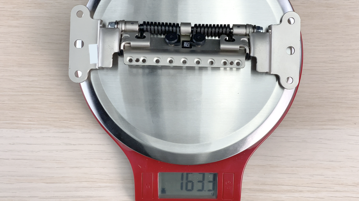 新的鉸鏈重量約 163.3g。這次換上新的鉸鏈,不過同樣也是塑膠的墊片,但至少在這台電腦的年限中應該是不會再壞第二次吧?