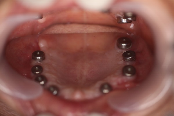 在臨床診療全口重建治療上經常遇到使用活動假牙多年患者,換過活動假牙一副又一副,經常面對到使用多年後牙齦及活動假牙密合性衰減,導致咀嚼功能與舒適性方面較差,必須仰賴假牙黏著劑塗抹在活動假牙飲食時才不會鬆脫,甚至在齒槽骨吸收太多(牙齦畏縮嚴重)時,活動假牙根本就會戴不住,想解決活動假牙使用不便的方法便可採用人工植牙手術來解決。