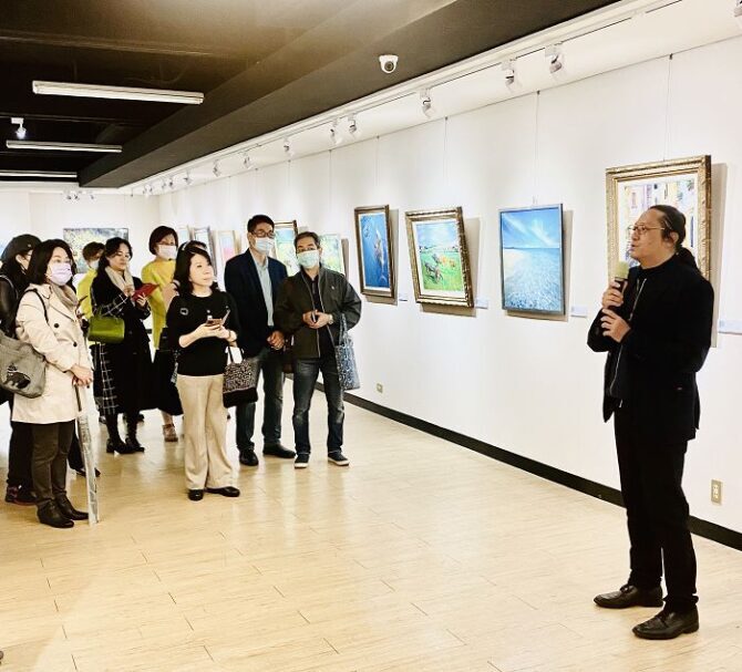 普羅畫室負責人鄒佳哲於師生聯展開幕式致詞。