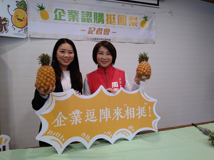 中國宣布3月起暫停進口台灣鳳梨,因出口中國占9成、年產值近新台幣15億元,影響農民甚鉅。屏東身為台灣鳳梨的主要產地,面對此波衝擊,各界紛紛伸出援手。由於鳳梨產季持續到五月,周春米委員希望透過企業與民眾的認購能夠平均而長久。此次認購金額比照政府收購價每公斤21元,總共認購6000箱鳳梨,約6萬公斤,包括力暘能源、扶輪社、職業公會等在地企業與社團皆出席力挺。