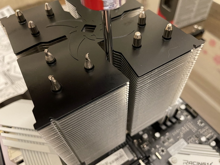 接著鎖上散熱器兩邊各一顆帶有彈簧的螺絲便完成安裝,算是簡單好安裝!這時就知內附的加長螺絲起子好用的地方,這加長的螺絲起子留著日後要拆裝一些東西也好用!