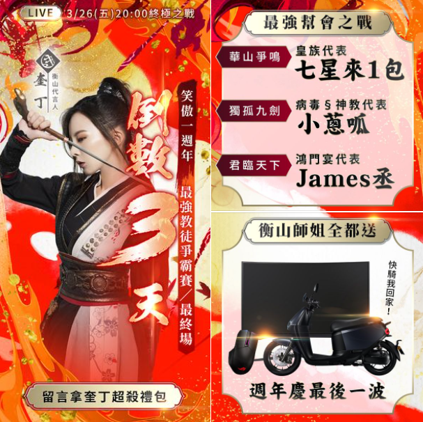 3/26 晚上八點最強教徒爭霸賽的最終場要開打了 這次奎丁會來喔~~ 而且看直播會送一堆禮物,那天有空的人記得去看 粉絲團連結 記得要事登哦~這一次到3/25要登入~~這樣才能抽Gogoro S2、三星曲面電競螢幕、米家掃地機器人喔 事登頁面 讚 收藏 快速回應 引言回應